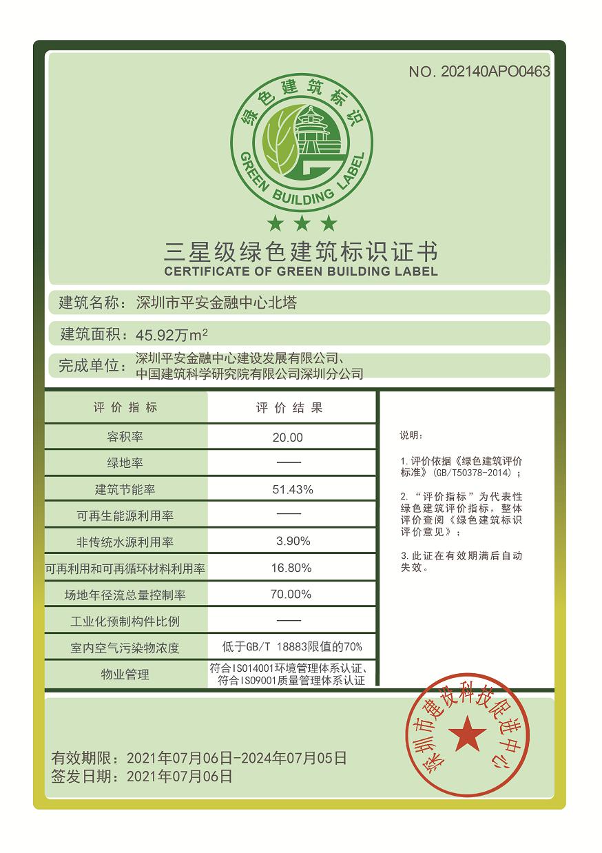 近日,中國(guó)建研院深圳分公司成功取得深圳平安金融中心國(guó)家三星級(jí)綠色建筑運(yùn)行標(biāo)識(shí)和美國(guó)LEED O+M:EB(運(yùn)營(yíng)與維護(hù):既有建筑)鉑金級(jí)認(rèn)證。