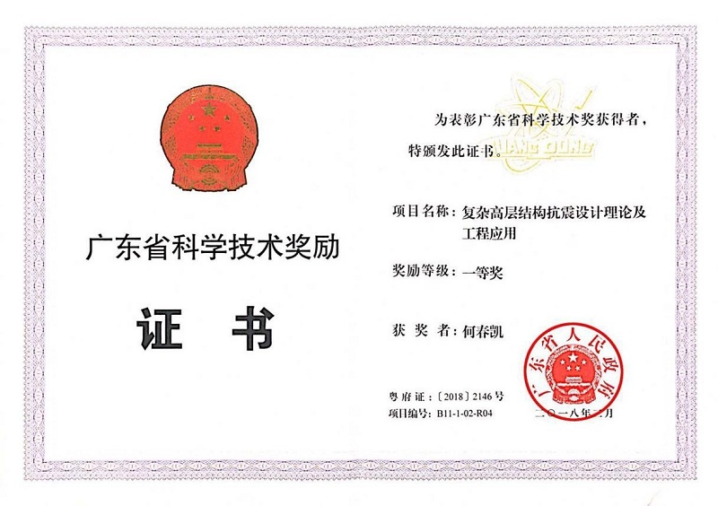 2018年 3月11日,廣東省人民政府發(fā)布了關(guān)于2017年度廣東省科學技術(shù)獎的通報。根據(jù)《廣東省科學技術(shù)獎勵辦法》,經(jīng)省科學技術(shù)獎評審委員會評審、省科技廳審核、省人民政府批準授予,深圳中建院建筑科技有限公司(下稱深圳中建院)、中建院總經(jīng)理何春凱榮獲2017年度廣東省科學技術(shù)獎一等獎。獲獎項目《復雜高層結(jié)構(gòu)抗震設(shè)計理論及工程應(yīng)用》,是深圳中建院建筑科技有限公司和哈爾濱工業(yè)大學合作完成的課題。