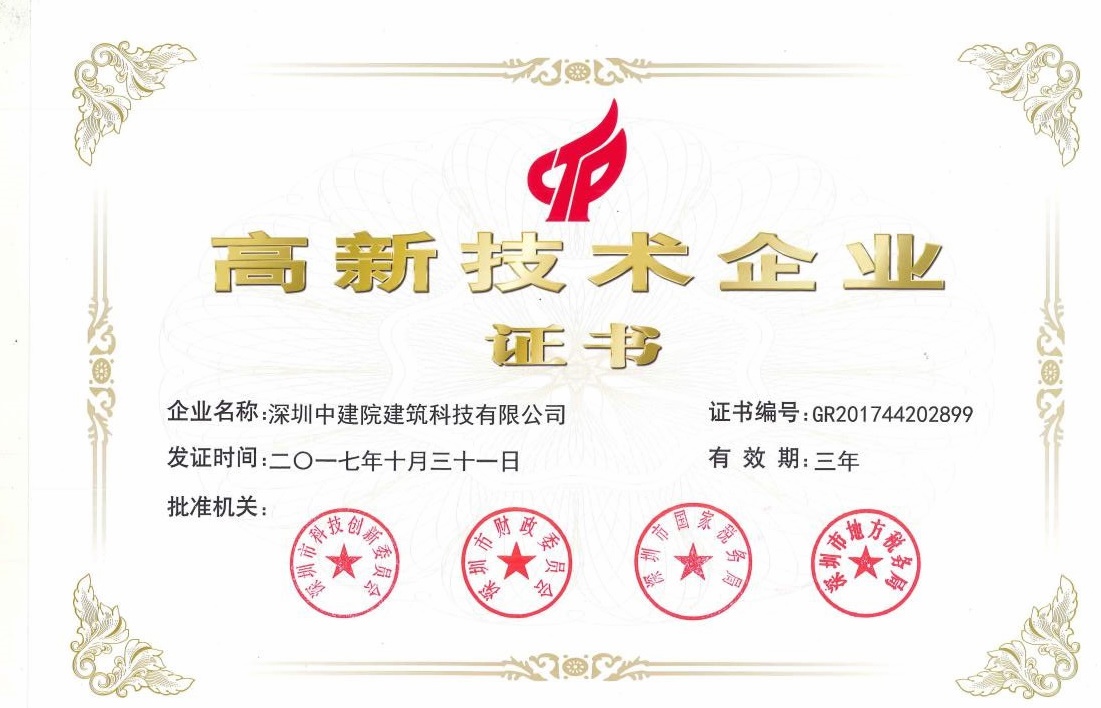 日前,全國高新技術(shù)企業(yè)認(rèn)定管理工作領(lǐng)導(dǎo)小組辦公室公布了2017年深圳市第二批國家高新技術(shù)企業(yè)名單,深圳中建院建筑科技有限公司(以下簡稱“深圳中建院”)通過嚴(yán)格評(píng)審,榮獲國家高新技術(shù)企業(yè)認(rèn)定(證書編號(hào):GR201744202899)。
