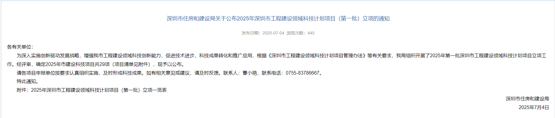 ?由公司牽頭申報(bào)的科技項(xiàng)目《面向智能建造的高層建筑全生命周期數(shù)字智能健康監(jiān)測技術(shù)研究與應(yīng)用》,成功通過2025年深圳市工程建設(shè)領(lǐng)域科技計(jì)劃項(xiàng)目(第一批)評審并獲批立項(xiàng)。