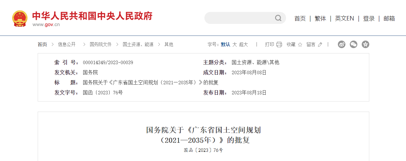 自然資源部《關(guān)于報請批準(zhǔn)〈廣東省國土空間規(guī)劃(2021—2035年)〉的請示》(自然資發(fā)〔2023〕76號)收悉?,F(xiàn)批復(fù)如下: