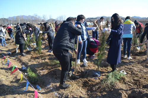 上午九點(diǎn)半,院團(tuán)委組織54名青年分乘兩輛車來到懷柔植樹基地,兩人一組,男女搭配,分工合作,男青年負(fù)責(zé)挖坑、擔(dān)水,女青年負(fù)責(zé)扶苗、培土,大家干的熱火朝天,每人都親手種植了一棵小樹,并在自己種植的小樹上,小心翼翼的掛上自己的標(biāo)牌,認(rèn)真地寫上自己的寄語。