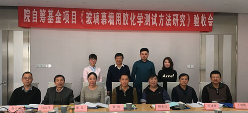 2017年1月9日,由我院檢測(cè)中心承擔(dān)的院自籌應(yīng)用研究課題“玻璃幕墻用膠化學(xué)測(cè)試方法研究”在北京順利通過(guò)驗(yàn)收。本次驗(yàn)收委員會(huì)由中國(guó)建筑標(biāo)準(zhǔn)設(shè)計(jì)研究院顧泰昌教授級(jí)高工、中國(guó)建筑金屬結(jié)構(gòu)協(xié)會(huì)黃圻高工、中國(guó)建筑裝飾協(xié)會(huì)邱建輝高工、中國(guó)建筑金屬結(jié)構(gòu)協(xié)會(huì)鋁門(mén)窗幕墻委員會(huì)董紅高工、北京德宏幕墻工程技術(shù)科研中心王德勤教授級(jí)高工、北京中新方建筑科技研究中心劉忠偉教授級(jí)高工、山東大學(xué)魯在君教授組成,由顧泰昌擔(dān)任主任委員,黃圻和邱建輝擔(dān)任副主任委員。院科技處程巖副研究員、院檢測(cè)中心張仁瑜副主任、課題驗(yàn)收專家及課題組成員等共14人參加了會(huì)議。