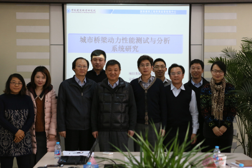 12月10日,由院檢測中心承擔的住建部科技計劃項目、院自籌應用研究課題“城市橋梁動力性能測試與分析系統(tǒng)研究”在北京順利通過驗收。本次驗收委員會由北京市市政工程研究院研究員鐘銘、中交公路規(guī)劃設計院有限公司檢測中心教授級高工張新越、交通運輸部公路科學研究院研究員羅翥、中冶建筑研究總院有限公司檢測中心教授級高工楊勇新、院檢測中心研究員張仁瑜、中交四公局(北京)公路試驗檢測科技有限公司高工卜凡民、北京市建設工程質(zhì)量第三檢測所有限責任公司教授級高工田春艷組成,鐘銘研究員擔任主任委員。院檢測中心張仁瑜副主任、課題驗收專家及課題組成員等共11人參加了會議。會上,驗收專家審核了驗收資料,聽取了課題組的匯報,經(jīng)質(zhì)詢和討論,認為該項目對城市橋梁結(jié)構(gòu)在環(huán)境激勵下不同模態(tài)分析算法進行了比較研究,并對不同的算法進行了優(yōu)化,經(jīng)驗證改進后的算法可靠,適用于橋梁結(jié)構(gòu)模態(tài)分析。項目開發(fā)的工程結(jié)構(gòu)模態(tài)分析軟件(MAES),經(jīng)有限元比較和實橋測試結(jié)果驗證,具有較高的精度和計算效率。軟件具有完全自主知識產(chǎn)權(quán),填補了城市橋梁結(jié)構(gòu)模態(tài)分析軟件方面的空白。驗收專家認為課題完成了研究任務,達到了預期目標,研究成果達到國內(nèi)領(lǐng)先水平,一致同意通過驗收。